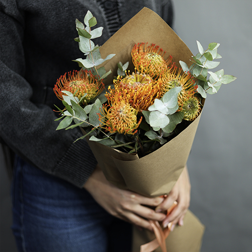 Букет "Гости из будущего" из 5 лейко и эвкалипта