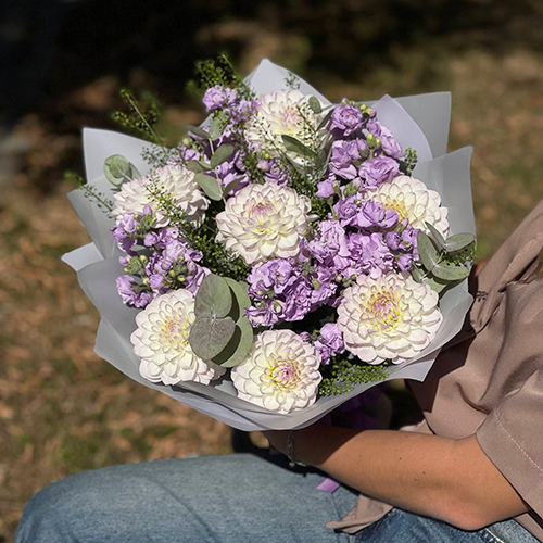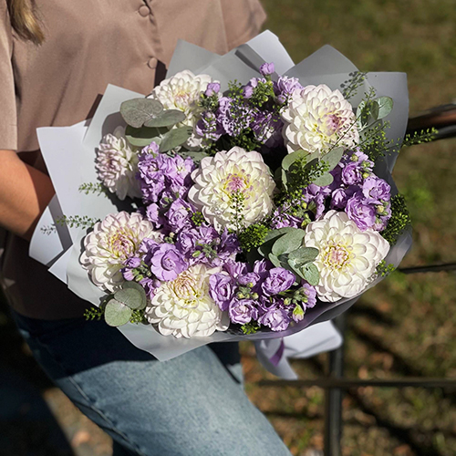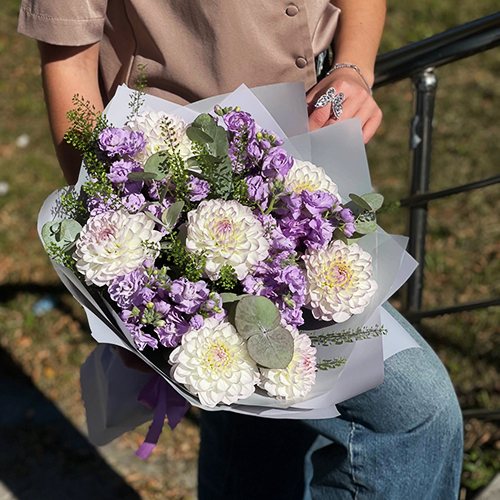 Букет "Совершенство" из георгин и ароматных маттиол