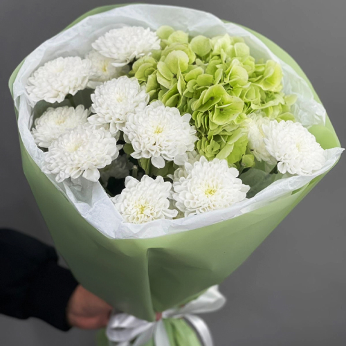 Букет "Линда" из хризантем и Голландской гортензии
