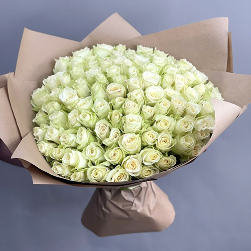 Букет 101 белая роза кения (40 см)