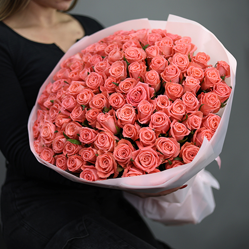 Букет 101 коралловая роза (70 см)
