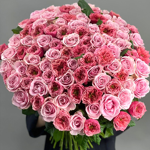 Нежный букет из 101 розы Риджентс парк и Аваланж микс (70 см)