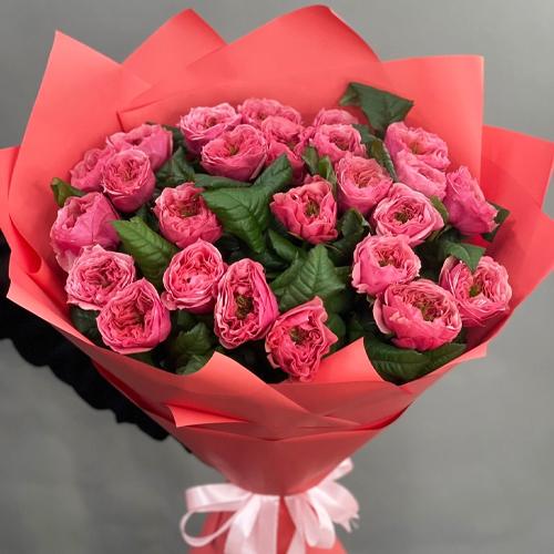 Букет из 25 махровых пионовидных роз Риджентс парк (70 см)