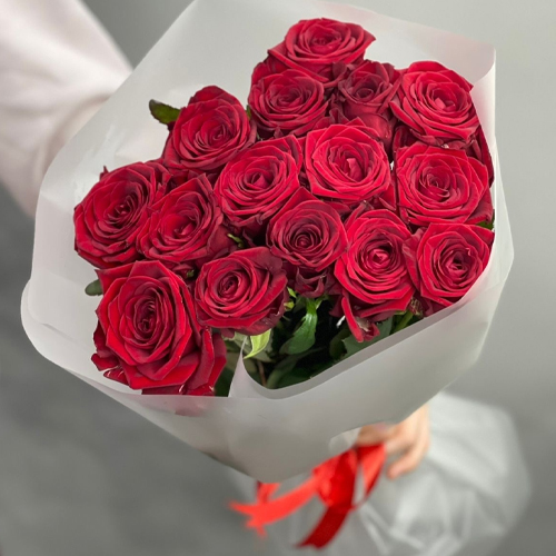 Букетик из 15 красных роз (60 см)