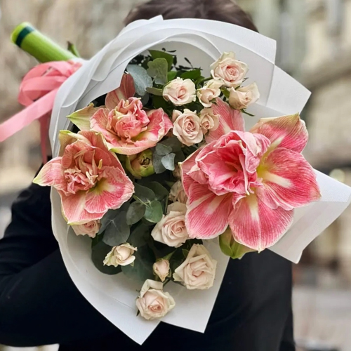 Букет "Анель" из амариллисов и кустовых роз
